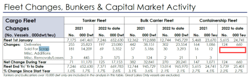 根據(jù)Alphaliner的數(shù)據(jù),此前,最后一艘作為廢品出售的集裝箱船是1991年建造的310標箱“ Da Fa”號,去年12月被出售給孟加拉國的回收商。2021年,僅有19艘集裝箱船被拆除,總計1.65萬TEU。Alphaliner預計今年與此類似或更低。然而,2023年可能會有至少25萬TEU被拆除。